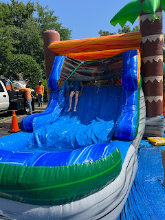 We went to Landon's 8th birthday party on Saturday. They had water slides and bouncy houses.
